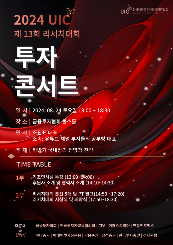 UIC(전국대학생 투자연합동아리)에서 주관하는 리서치 대회에 SMP 2팀이 수상을 하게되었습니다.