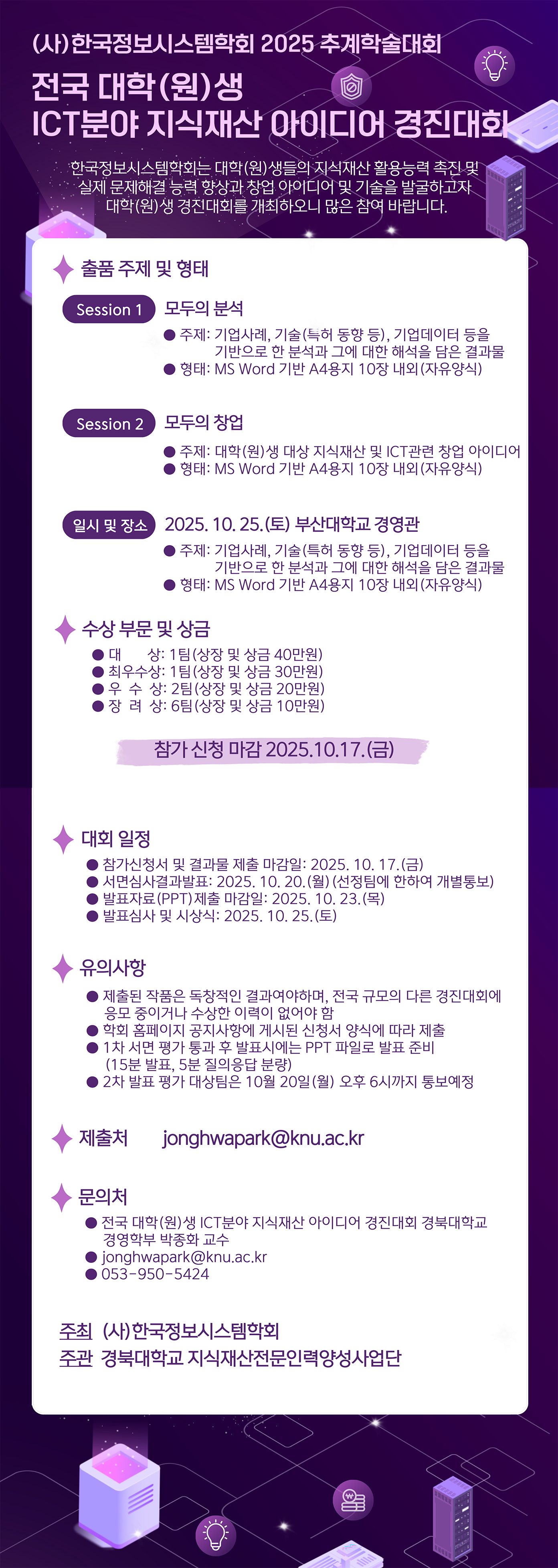 fnctId=bbs,fnctNo=2557 작성일 2025.09.22 수정일 2025.09.22 작성자 오대양 조회수 59 ICT분야 지식재산 아이디어 경진대회 첨부파일 첨부파일이(가) 없습니다.