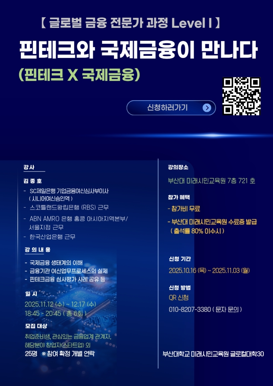 [미래시민교육원] 글로벌 금융 전문가 과정-핀테크X국제경영 신청 안내(~11/3)