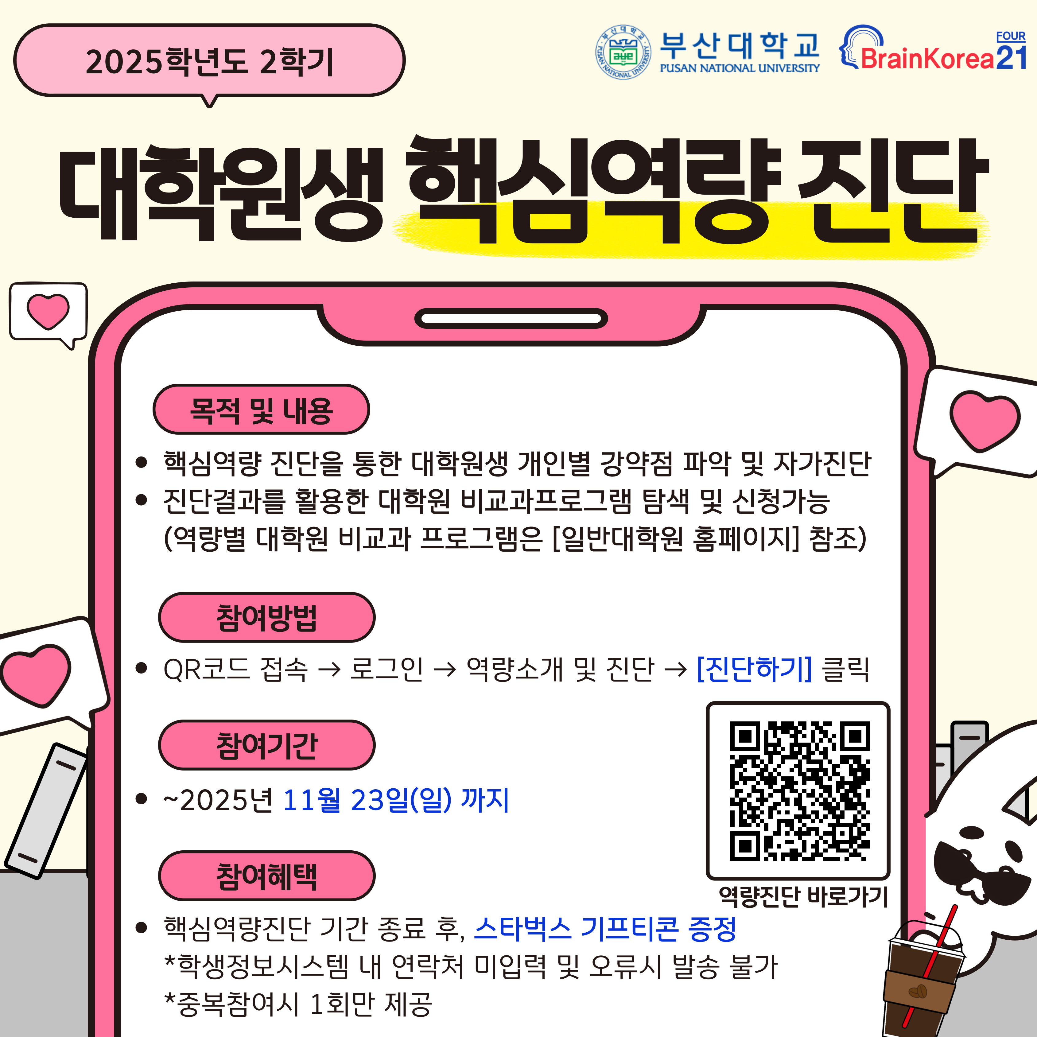 [BK21 대학원혁신] 2025학년도 2학기 대학원생 핵심역량 진단 실시 안내